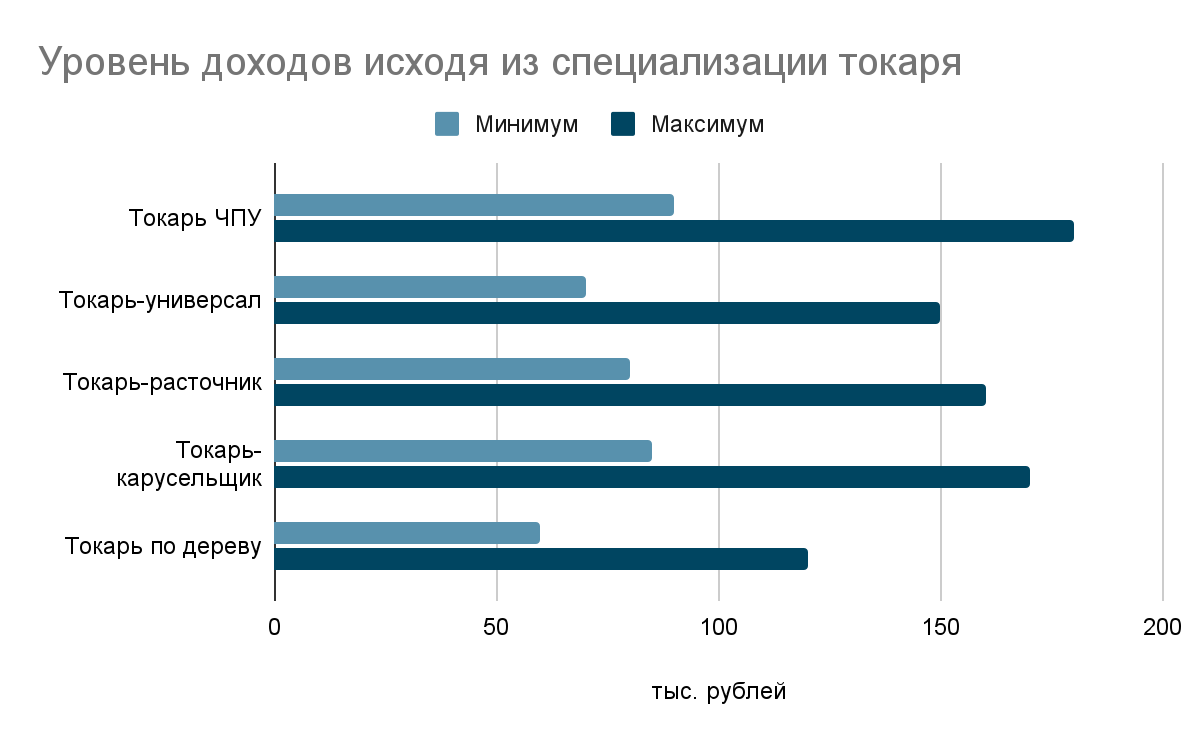 Если рассматривать функционал токаря в разных областях, то можно отметить следующее: